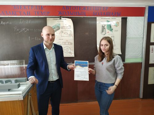 1 наурыз күні оқытушы Р. Х. Курбанов «Темір жол көлігінде тасымалдауды ұйымдастыру және қозғалысты басқару» мамандығының Д-33 топ студенттер арасында КОМПАС-3D бағдарламасында сызбаны орындау бойынша сайыс өткізді. Байқауға қатысушылар екі өлшемді сызу арқылы КОМПАС-3D бағдарламасын меңгерудің жоғары деңгейін көрсетті. Барлық қатысушылар қойылған міндеттерді сәтті орындады. Байқау жеңімпазы сертификатпен марапатталды.