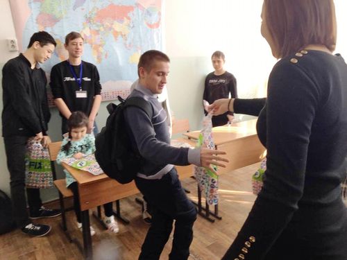 Сонымен қатар, студенттер № 13 орта мектепке барып, ерекше білім алу қажеттілігі бар балалармен кездесіп, оларға сыйлықтар табыс етті. Бұл балалар Солтүстік Қазақстан облысы әкімдігі әлеуметтік қорғау басқармасының тірек-қимыл аппараты зақымданған мүгедек балаларға арналған Петропавл интернат-үйінің тәрбиеленушілері болып табылады. Балалар әр түрлі кеңсе тауарларын сыйға алды: дәптерлер, альбомдар, блокноттар, қаламдар, түрлі-түсті қарындаштар, фломастерлер, сызғыштар, қарындаштарға арналған ұштағыштар, бояулар, қылқаламдар, түрлі-түсті қағаз, желім, қайшы және т.б..
