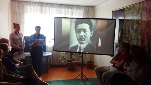 2018 жылы 31 мамырда Бәйкен Әшімов атындағы Петропавл теміржол көлігі колледжінде «Туған жер» клубының белсенділері Пилипенко Ирина мен Горшкова Ангелина жатақхананың студенттері үшін «Еске алу шамы өшпес ...» атты еске алу сағатын өткізді.