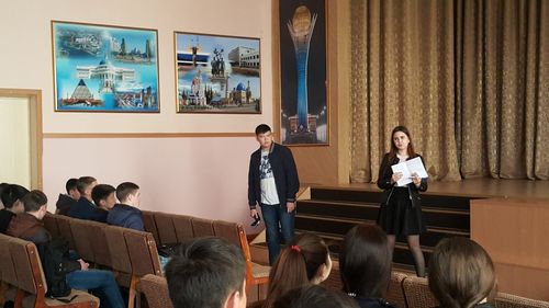 Студенттер біздің елордамыз - Астана қаласы дамуының егжей-тегжейлі тарихы туралы, халықтың және Президенттің оның қалыптасуына қосқан үлесі туралы қызығушылықпен тыңдады.