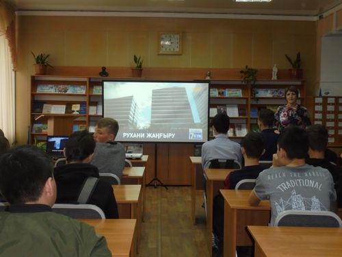 Іс-шара барысында көрермендерге презентация ұсынылды, «Рухани жаңғыру» бейнефильмі көрсетілді. Оқу залында «Менің Қазақстаным - менің болашағым» атты кітап көрмесі ұйымдастырылды.