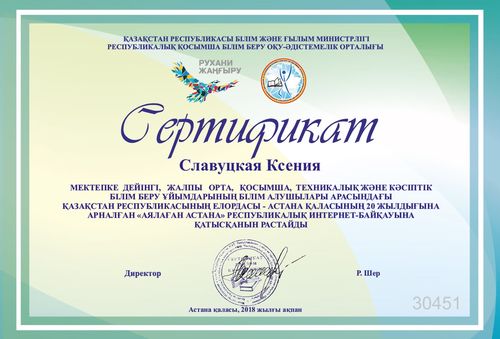 2018 жылғы 14.02. өткен байқаудың нәтижелері бойынша Бәйкен Әшімов атындағы Петропавл теміржол көлігі колледжінің Б-11 топ студенті Славуцкая Ксения «Астана бояулары» номинациясында қатысушы серитификатына иеленді. Жоба жетекшісі тәрбиеші В. Г. Журавлева.
