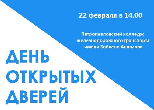2018 жылғы 23 ақпан күні сағат 14.00-де Бәйкен Әшімов атындағы Петропавл теміржол көлігі колледжінің акт залында Ашық есіктер күні болады.