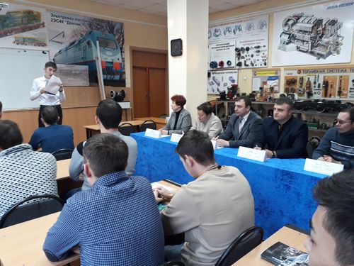 – мамандықтың IV курс студенттері қатысқан ғылыми-тәжірибелік конференция. Студенттер Э. Кукежан, Е. Наби, М. Шляйнинг өткен өндірістік-технологиялық тәжірибенің қорытындылары туралы мәлімдеме жасады. Конференцияның жұмысына «РЖД» ААҚ филиалы Оңтүстік-Орал темір жолы Петропавл бөлімшесі ВЧД-4 кәсіпорнының инженері В. В. Сердюк, арнайы пәндер оқытушылары А. В. Ионов, Д. В. Кириллов, В. Г. Смирнов, Н. П. Никитина, Л. Н Поролло қатысты.