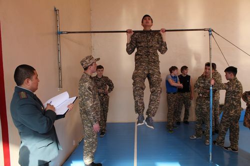Жарыстар барысында гитараның сүйемелдеуімен әскери-патриоттық әндер орындалды.