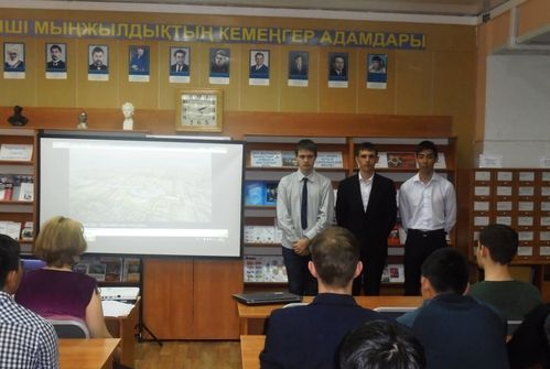 Студенттерге алда тұрған оқиға туралы ақпарат берілді. Іс-шараны өткізу барысында интербелсенді тақтада «Астана - болашақ ЕХРО–2017 қаласы», «EXPO-2017-ге арналған «Сфера» ғимараты қандай болады», «Сапро–НАТ» ЖШС репортажы» бейнефильмдері көрсетілді.