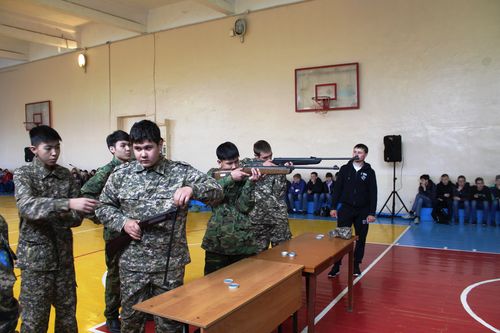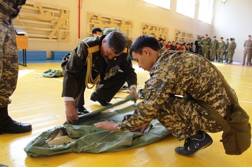 Іс-шараға ҚР ҚК ардагері интернационалист жауынгер запастағы прапорщик П. П. Цвингер келді, көрермендер шақырылды.