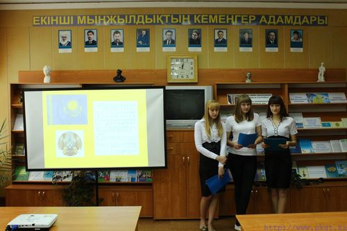 Іс-шара барысында оқушылардың назарына Қазақстан Республикасының рәміздеріне арналған слайдтар және «Қазақстан Республикасының гимні», «Менің қалам» бейнеклиптері ұсынылды.