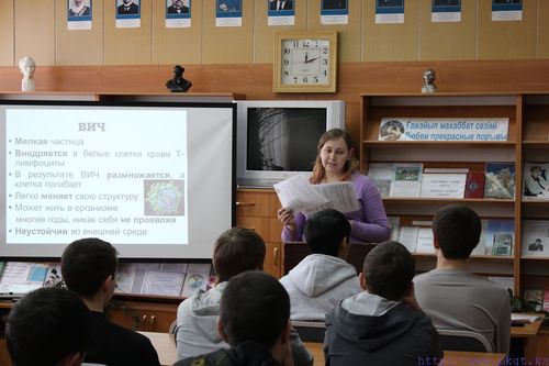 05.04.2013 жылы Петропавл темір жол көлігі колледжі кітапханасының оқу залында 1 курс В-11, Э-11, Д-11 топтарының қатысуымен ЖҚТБның алдын алу орталығының маманы О.С.Симухина «АҚТҚ-инфекция туралы әр адам білуі тиіс» тақырыбы бойынша тақырыптық сынып сағатын өткізді.