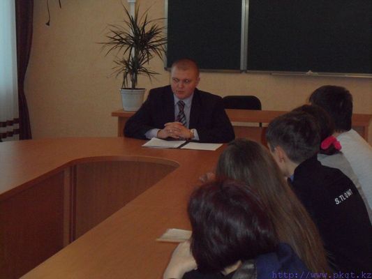 11.12.12 жылы Петропавл темір жол көлігі колледжінде СҚО жастар саясаты мәселелері жөніндегі басқарма өкілдерімен, Балалар мен жастар ҮЕҰ бөлім бастығы П.И.Шиловпен кездесу өтті.